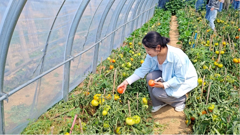 جذبہ کے بعد، یہ ایک آرام دہ وقت تھا. صبح 10:30 بجے، ہم فطرت کے ساتھ ایک گہرے تصادم کا آغاز کرنے کے لیے اکٹھے زیازوانگ ٹماٹو پکنگ گارڈن گئے۔ یہ ایک صاف دن ہوا، اور سورج کھیتوں پر چمکا۔ سبز شاخوں اور پتے چمکدار سرخ 69 ٹماٹروں سے ڈھکے ہوئے تھے، جو گول اور بولڈ، رنگ میں چمکدار تھے، جس سے لوگ دور سے لعاب دہن کرتے تھے۔