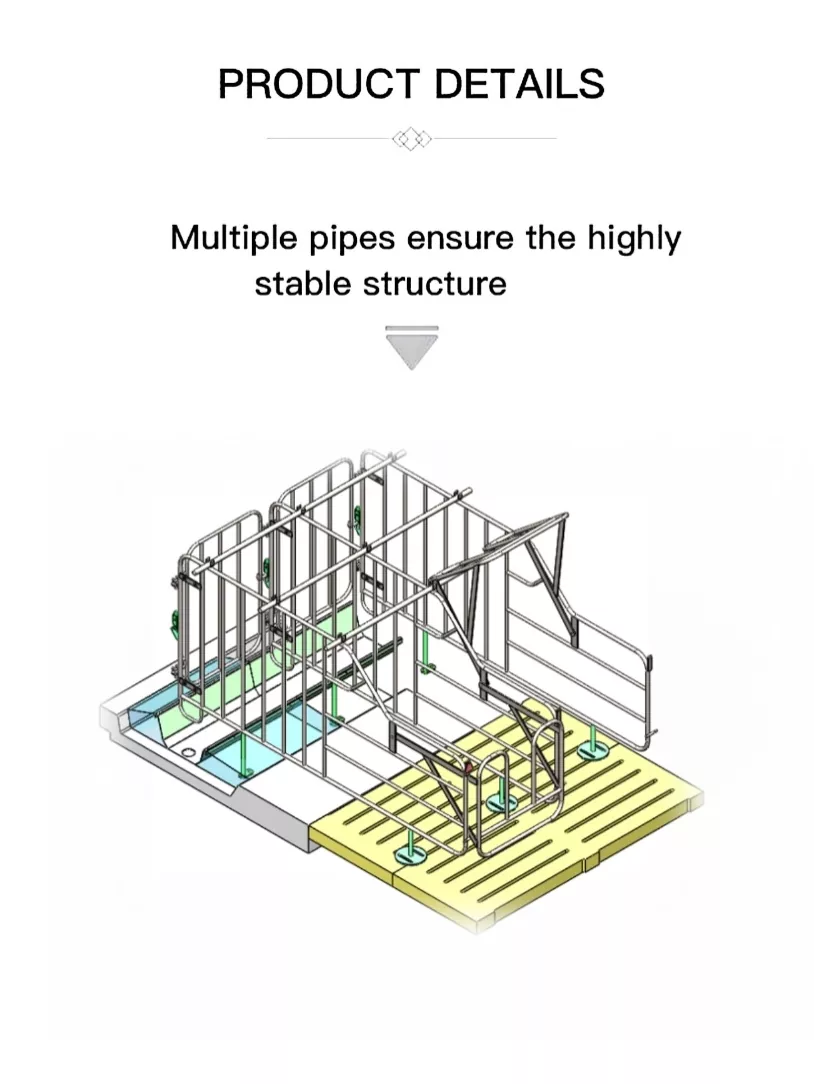 2. ہموار، کھلے فریم کا ڈھانچہ کھاد کو جمع ہونے سے روکتا ہے، جس سے روزانہ کی صفائی اور جراثیم کشی کو فوری اور مکمل بنایا جاتا ہے۔