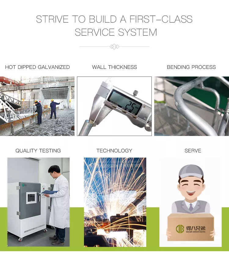 Deba Brothers® چین میں ہسپانوی جیسٹیشن اسٹالز کا ایک پیشہ ور صنعت کار ہے۔ ہمارے ہسپانوی جیسٹیشن اسٹالز صارف دوست ڈیزائن کی خصوصیت رکھتے ہیں، تمام ترازو کے پگ فارمز پر وسیع پیمانے پر لاگو ہوتے ہیں، اور پریمیم مواد اور عمدہ کاریگری کے ساتھ غیر معمولی پائیداری فراہم کرتے ہیں۔ دنیا بھر میں لائیو سٹاک فارمرز کی طرف سے پذیرائی حاصل کی گئی، اس پروڈکٹ کو اس کی مستحکم کارکردگی اور اعلیٰ لاگت کی تاثیر کے لیے مکمل طور پر تصدیق کی گئی ہے۔